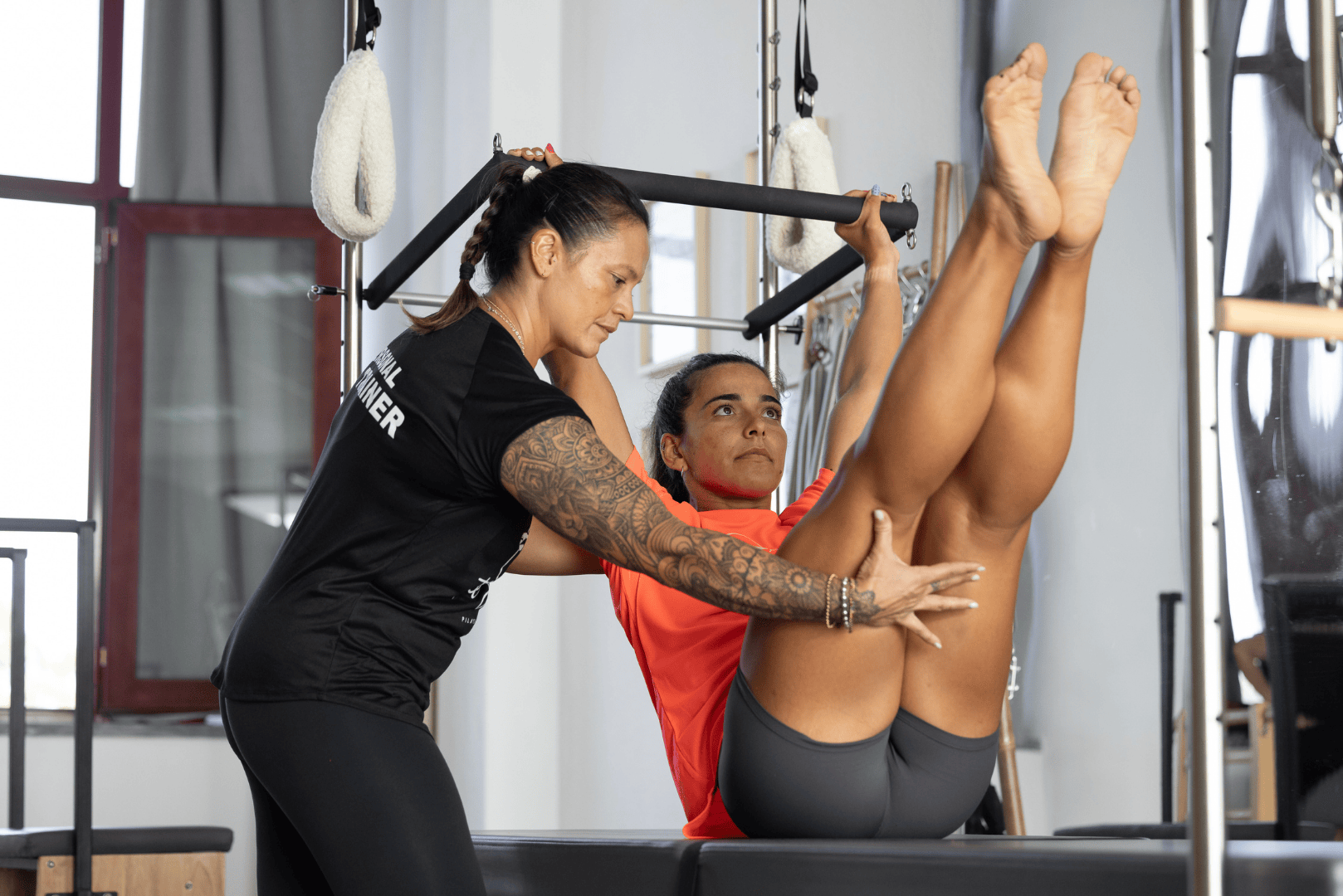Sessões estruturadas com progressão clara e atenção ao detalhe. Pilates e Funcional integrados para força, mobilidade e postura, sempre com segurança e consistência.
