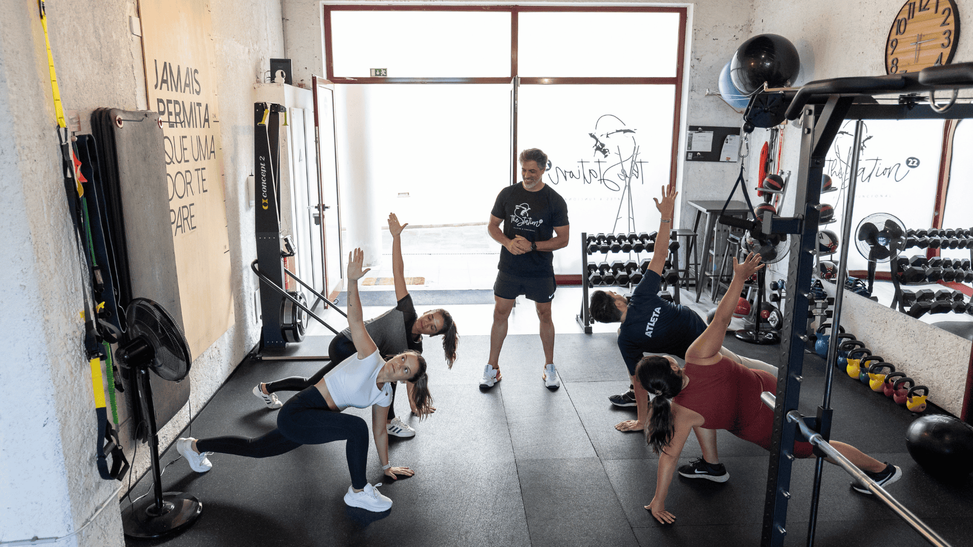 Sessões estruturadas com progressão clara e atenção ao detalhe. Pilates e Funcional integrados para força, mobilidade e postura, sempre com segurança e consistência.