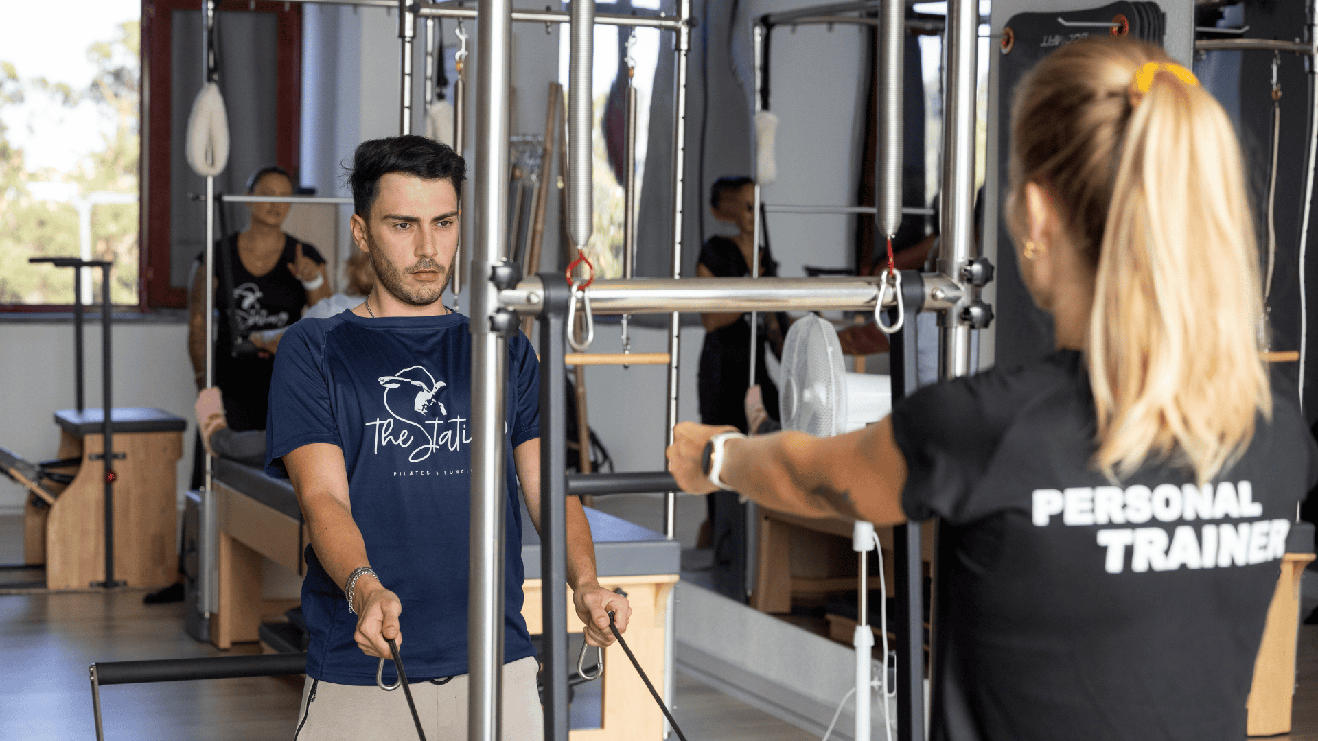 A Station 22 é um estúdio boutique de Pilates & Treino Funcional em Oeiras. Trabalhamos com personalização real: grupos reduzidos, professor fixo, planos ajustados ao seu objetivo e acompanhamento próximo. O foco é simples: técnica bem aplicada, constância e resultados que se sentem no quotidiano.